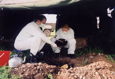 Christine and I hard at work over "The Pit", searching for parasites.