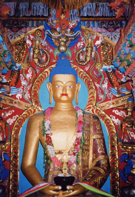 Two storeys of the three storey high Buddha inside the new Temple.