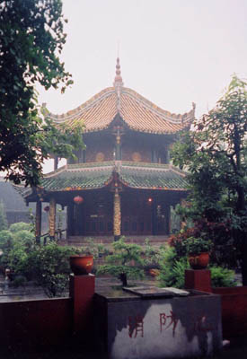 Eight Diagrams Pavilion, Qingyang (Green Ram) Monestary, Chengdu. It is built without nails and boasts 81 dragon carvings.